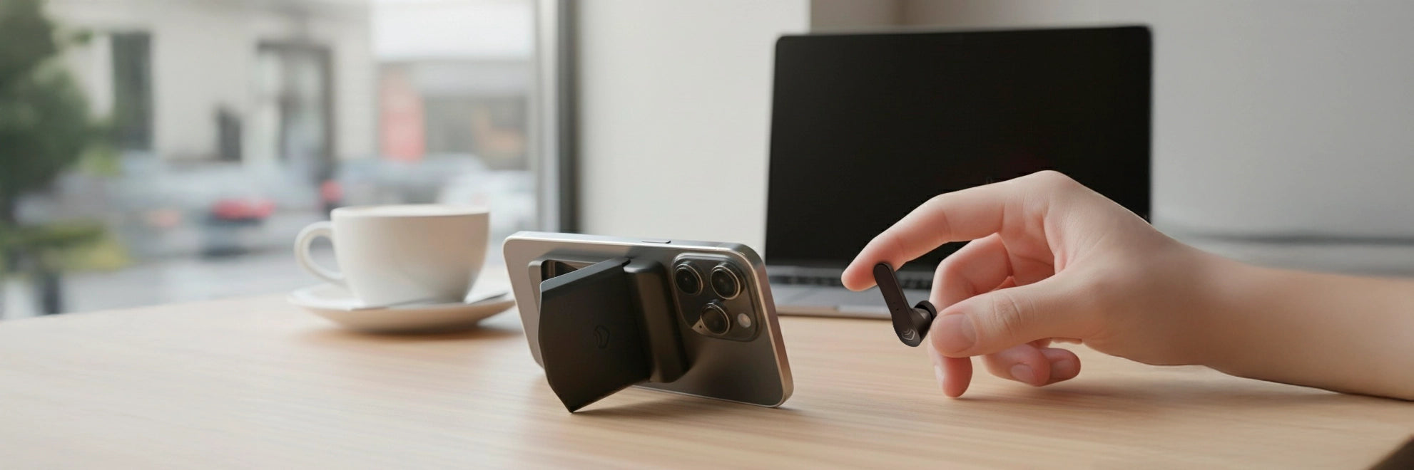 Born from the frustration of dead batteries and lost earbuds, KOMUTR was created to solve these daily annoyances. It combines MagSafe charging with a magnetic, loss-proof design for a truly wireless and worry-free experience. KOMUTR offers effortless audio that seamlessly integrates into your life.