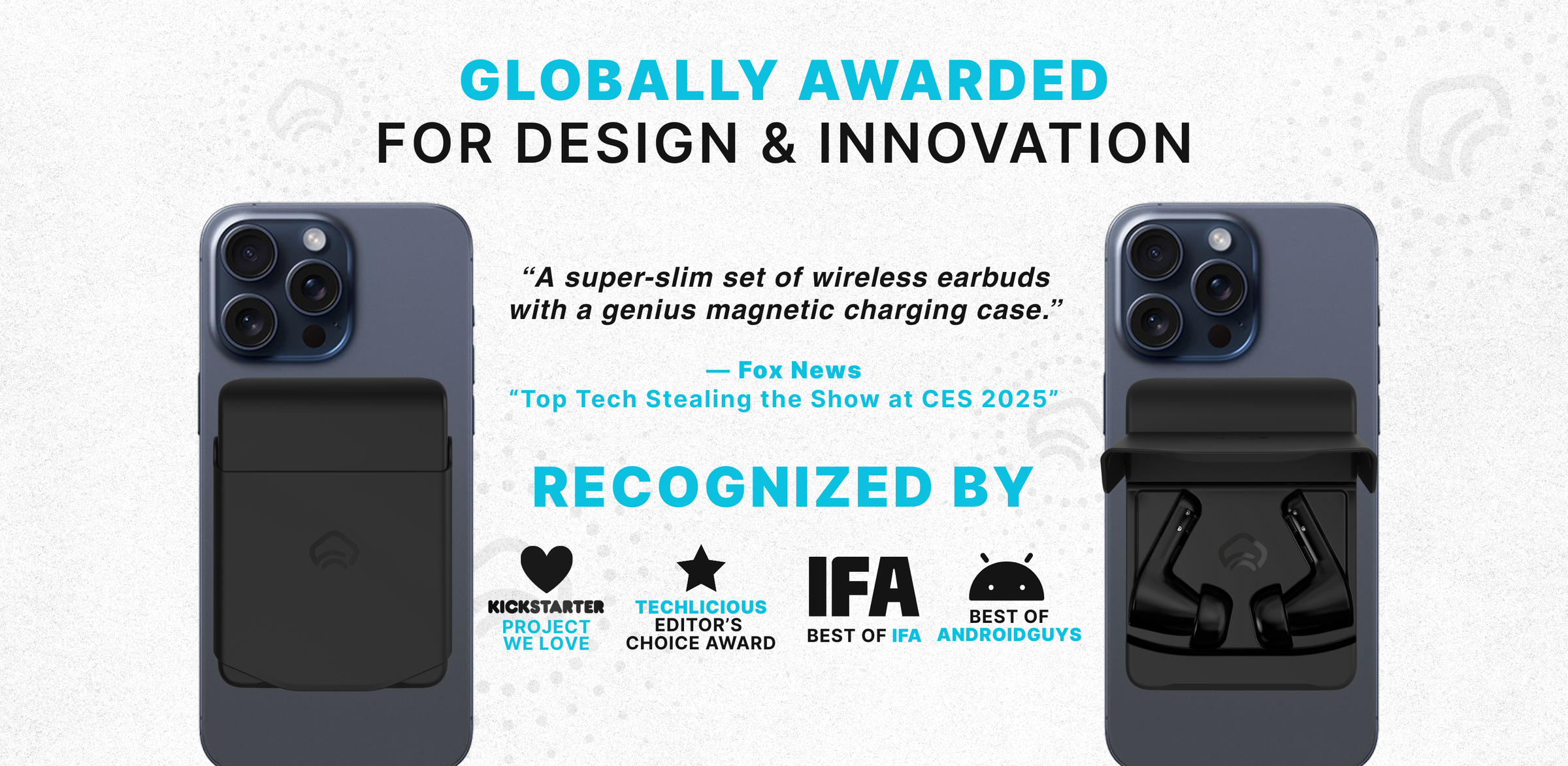 MagSafe Earbuds. That's right, they snap onto the back of your MagSafe compatible phone (iPhone 12 and newer) and even offer a convenient stand for your phone too. Better yet, they feature ANC and work with Apple Find My.