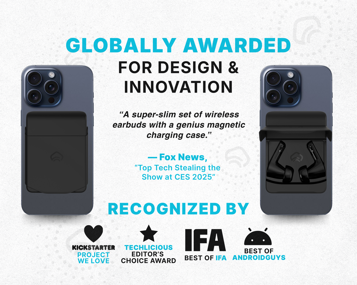 The new Komutr MagSafe earbuds are perhaps the most practical I've tested. Ultra-thin, they clip directly onto the back of your iPhone thanks to MagSafe and even double as a stand for watching videos. Super lightweight, with good battery life, a dedicated app, and even built-in Apple Find My so you never lose them again. A true alternative to traditional earbuds for those who want something compact, convenient, and always with them.