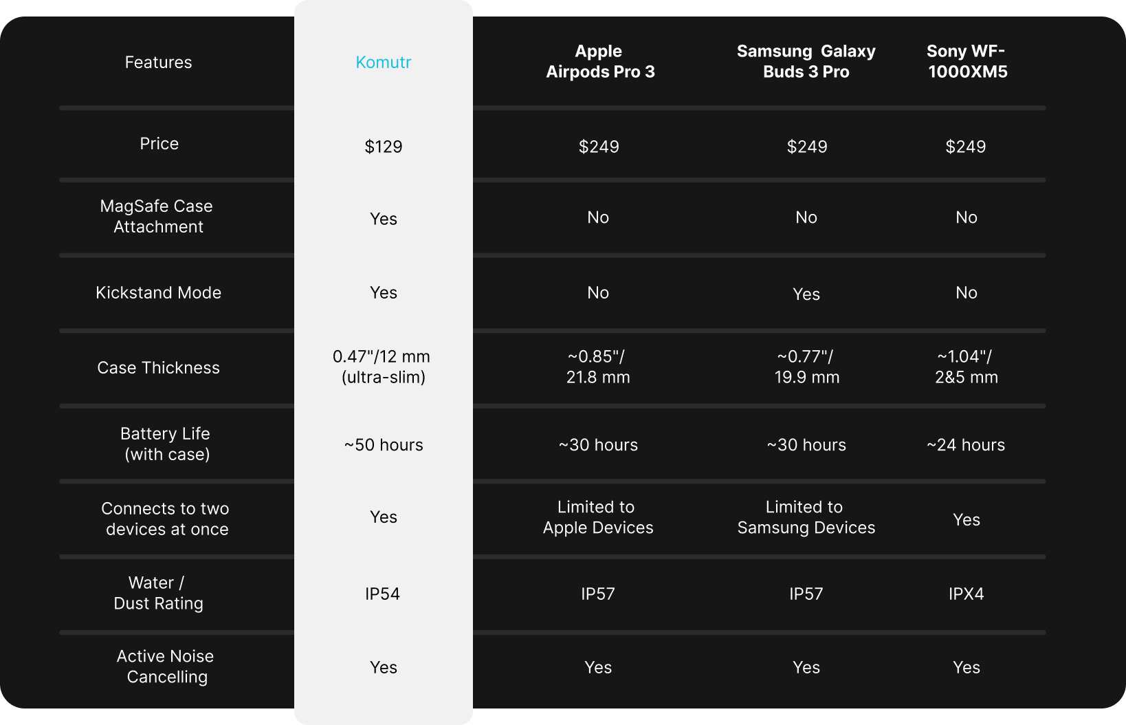 Because earbuds shouldn’t disappear into bags, desks, or gym lockers. The MagSafe case keeps Komutr attached to your phone — and is fully compatible with Apple Find My, so you can always locate it.