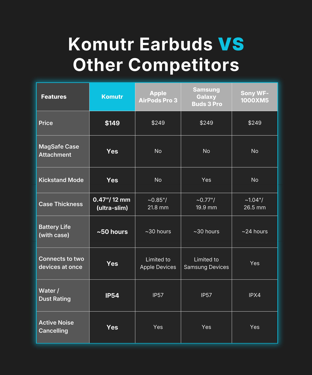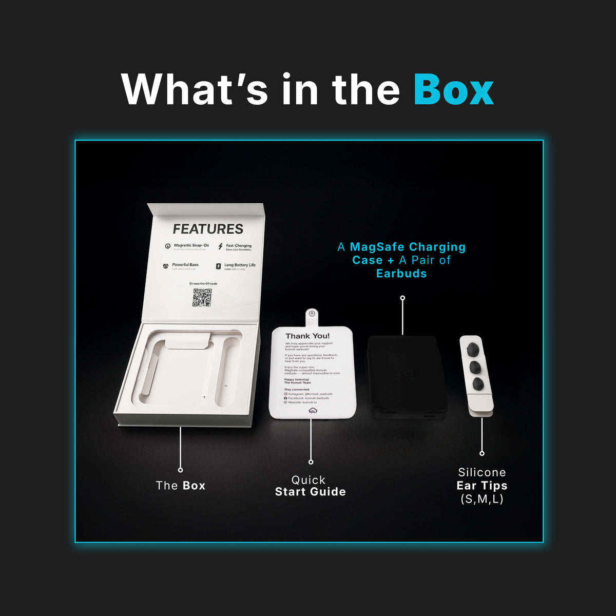 Komutr features one of the slimmest magnetic charging cases in the world, measuring only 0.47 inches (12 mm). This ultra-slim profile makes your earbuds feel like a natural extension of your phone . Pocket-friendly, lightweight, and always with you.