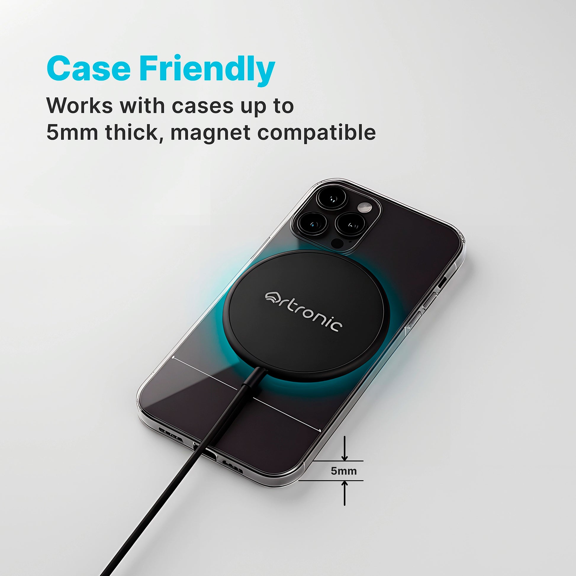 This is exactly what I needed to charge both of our phones when we travel! It sticks well to my iPhone and didn’t come off when we drove over rough pavement. It charged my phone at full speed. The charger looks and feels premium, and is not too big. It is compatible with my iPhone and my partner’s Android phone, and works well with both of them.